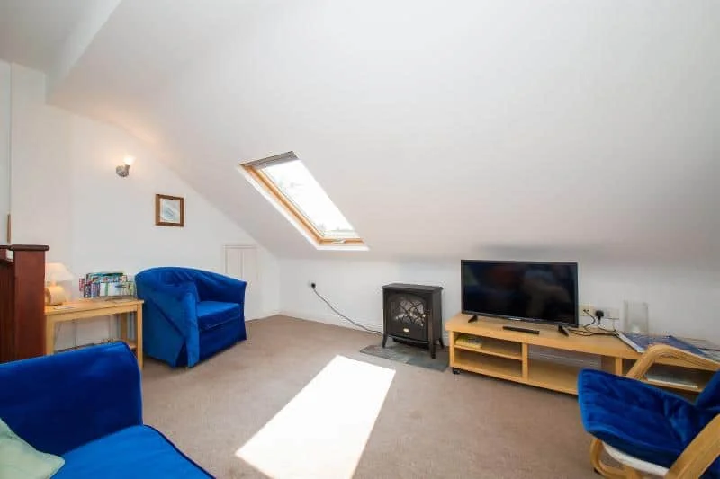 While the upstairs living room and second twin bedroom are not wheelchair accessible, the ground floor provides everything required for a relaxing and independent stay. Outside, sloped and level pathways lead through landscaped gardens, offering guests the chance to enjoy the tranquil countryside setting.