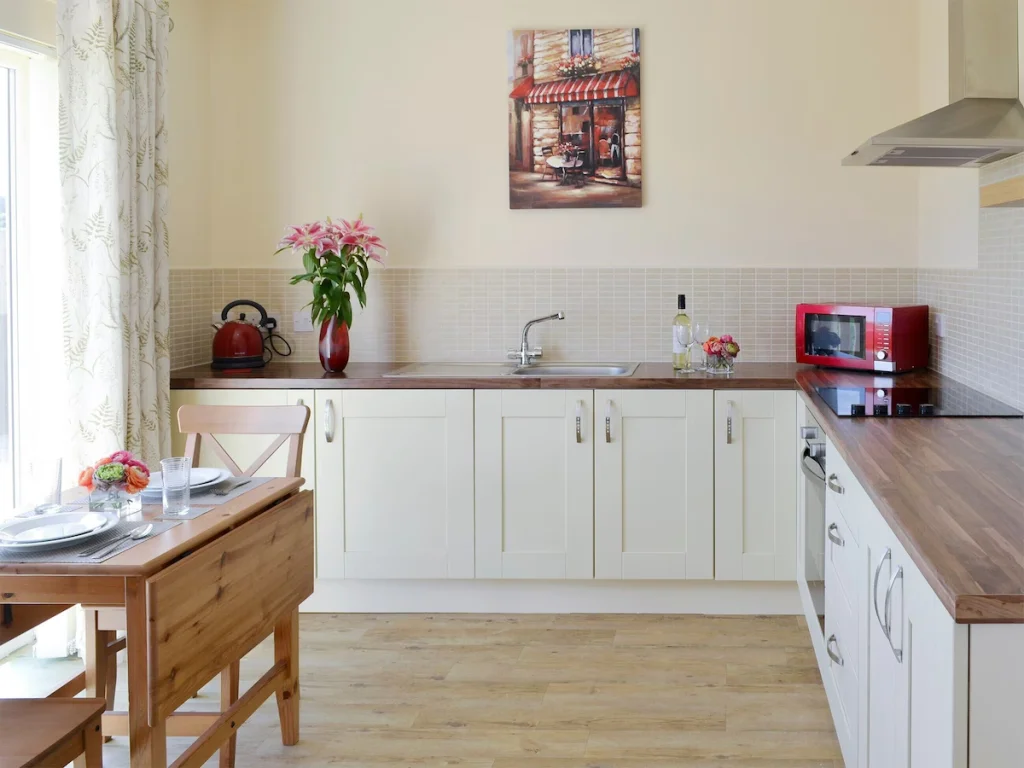 Discover Bramble Cottage, a beautifully presented wheelchair friendly holiday home set in the peaceful countryside of County Durham. This single-level property provides a welcoming and accessible retreat for couples, families, or friends, offering comfort, practicality, and stunning rural surroundings. Designed with accessibility at its core, Bramble Cottage ensures that guests with limited mobility can enjoy a relaxing and independent stay. The cottage features level access throughout, including step-free entry and onsite parking directly outside. The modern wet room includes a roll-in shower, lever-style wash basin tap, and toilet with side transfer space, making it ideal for wheelchair users and those with mobility aids. Both bedrooms are spacious and adaptable, featuring a double bed in one and two single beds in the other, with ample room at the sides and foot of each bed to accommodate wheelchairs or hoists. The open-plan living space is bright and airy, with level access to the kitchen and patio area. The lounge includes two comfortable sofas, a 30” Freeview TV, and a DVD player—perfect for relaxing after a day of exploring. The accessible kitchen is fully equipped with a wheelchair-friendly layout, including a low-height oven, hob, microwave, fridge, and washing machine, all reachable from a seated position. The breakfast bar and freestanding dining furniture create an inclusive dining setup for everyone. Guests can enjoy modern comforts such as underfloor heating, WiFi, bed linens, and towels included, while family-friendly extras like a travel cot, highchair, baby bath, and sterilizer are available on request. Outside, the private courtyard provides garden furniture and a barbecue area, ideal for al fresco dining. The property also grants access to six acres of unspoiled shared grounds, a secure bike store, and private parking for two vehicles. Perfectly positioned among scenic walking paths and open fields, Bramble Cottage offers easy access to nearby villages and local attractions. The Durham Heritage Coast is just a 15-minute drive or 8-mile walk away, with accessible routes leading to Seaham, Crimdon, and Easington beaches. Local shops and pubs are also within close reach, completing the experience of a tranquil yet well-connected countryside escape.