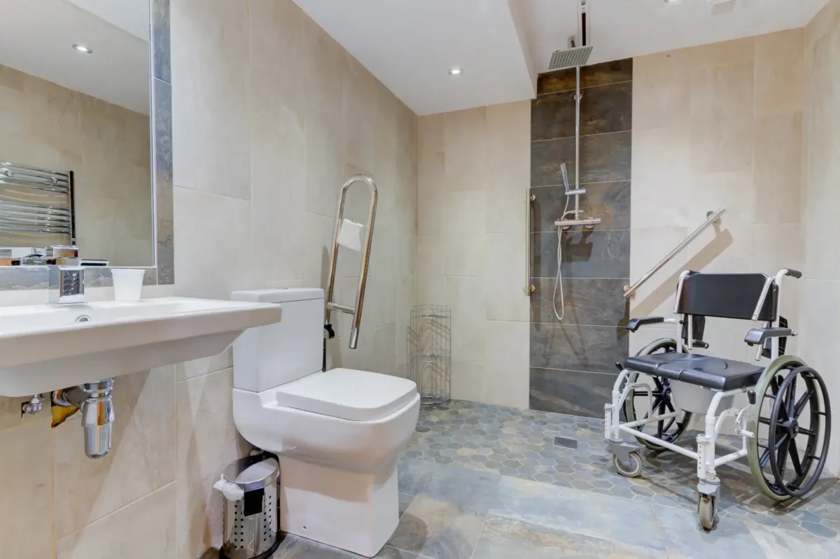 Welcome to Chestnut Cottage, a beautifully appointed wheelchair friendly holiday cottage at Brickhouse Farm, Lancashire. Designed with both comfort and accessibility in mind, this luxurious countryside retreat accommodates up to six guests, with the option to add a fold-up bed in the upstairs bedroom. Perfect for families, carers, and groups, Chestnut Cottage offers a serene escape where modern convenience meets rural charm. Inside, guests are greeted by a spacious open-plan living area, elegantly furnished to create a welcoming atmosphere. The accessible kitchen is thoughtfully designed for independence and practicality, featuring rise-and-fall worktops, a mid-height oven, and wheel-under counters, allowing guests of all abilities to prepare meals with ease. On the ground floor, two accessible bedrooms offer peaceful and comfortable accommodation. The first bedroom includes twin profiling beds, a ceiling track hoist, and a fully equipped wet room fitted with grab rails, a roll-in shower, and a shower chair, ensuring comfort and safety. The second ground-floor bedroom features twin or double beds and a stylish en suite with a walk-in shower, providing flexibility for guests’ needs. Upstairs, the third bedroom offers a fixed double bed and a luxurious en suite bathroom with a free-standing bath, creating a tranquil space to unwind after a day exploring the countryside. Outside, guests can relax in the enclosed courtyard garden or enjoy the private hot tub, surrounded by peaceful rural views. For dining and leisure, Brickhouse Farm offers a lakeside bistro, a hydrotherapy pool with hoist access, and a sensory room designed for relaxation. A fully accessible changing room is also available, ensuring that every guest can enjoy the facilities comfortably. With level access throughout, spacious interiors, and a commitment to inclusivity, Chestnut Cottage provides the perfect base for an accessible countryside getaway in Lancashire. Whether you’re enjoying the scenic surroundings, dining lakeside, or simply relaxing in comfort, this cottage ensures a relaxing, memorable, and fully accessible holiday for all.