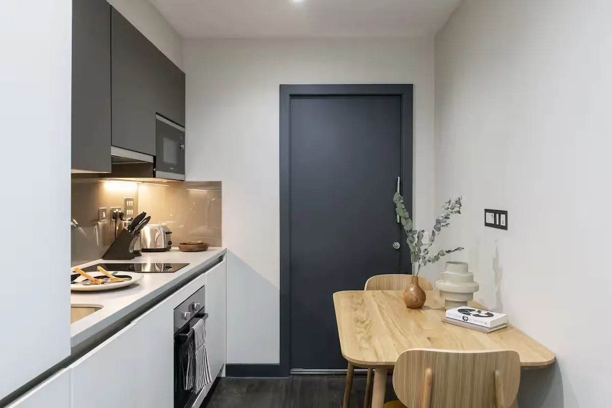 Nestled in the heart of London and only a short walk from St Paul’s Cathedral, Cove – Canon Street offers a stylish blend of apartment living and hotel comfort. Designed for guests who appreciate flexibility and contemporary design, this modern 4 star aparthotel features 77 thoughtfully furnished apartments that work equally well for short city breaks and longer stays. Accessibility is an important part of the experience at Cove – Canon Street. The accessible apartments are created to support guests with a wide range of mobility needs while maintaining the same clean, modern aesthetic found throughout the building. Each accessible unit includes a comfortable double bed, a spacious open plan kitchenette with a fridge, oven, stovetop, microwave and all essential utensils, and a large wet room with a wheel in shower, secure handrails and a wall mounted shower seat. These features provide safety, comfort and independence without compromising on style. All apartments are air conditioned and equipped with practical amenities that make day to day living easy. These include a dining area, coffee and tea making facilities, a flat screen TV with digital channels, an iron and ironing board and blackout curtains for a restful night’s sleep. Complimentary Wi Fi runs throughout the property, and weekly housekeeping keeps the space fresh during your stay. Guests also have access to a 24 hour front desk, concierge services and on site laundry facilities. A fully equipped 24 hour gym makes it easy to stay active, while the central location places restaurants, shops and historic landmarks right on your doorstep. Whether you are in London for business, exploring the city, or seeking an accessible place to stay with the independence of a self contained apartment, Cove – Canon Street brings together convenience, comfort and contemporary style in one of the capital’s most iconic neighbourhoods.