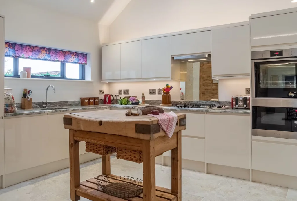 Downbridge Lodge in Hoxne is a peaceful, wheelchair-friendly escape set in the heart of the Suffolk countryside. Designed with accessibility, comfort, and relaxation in mind, this charming lodge features level access throughout, wide-open living spaces, and thoughtful accessible details that make it ideal for guests with mobility needs. The spacious open-plan living area includes a cosy 2-seater sofa, two armchairs, and a central coffee table, creating the perfect place to unwind after a day of exploring. A large dining table with free-standing seating sits beside a fully equipped kitchen, complete with a mid-height oven, accessible amenities, and a stylish central island. While some cupboards may be harder to reach from a seated position, the layout ensures ease and convenience for most guests. Two generous double bedrooms each offer non-profiling beds with manoeuvring space on all sides, plus their own ensuite bathrooms. Guests can enjoy either a step-free shower or a freestanding bath Outside, the level-access patio features freestanding seating, a covered area for year-round relaxation, and a fire pit and BBQ for cosy evenings outdoors. The lockable shed adds extra practicality, and the level gravel parking area ensures smooth arrival and departure. With Wi-Fi, a TV, a log burner, beautiful rural views, and close proximity to local pubs, shops, and restaurants, Downbridge Lodge is the perfect wheelchair-friendly countryside retreat for those seeking tranquillity, comfort, and inclusivity in Suffolk.
