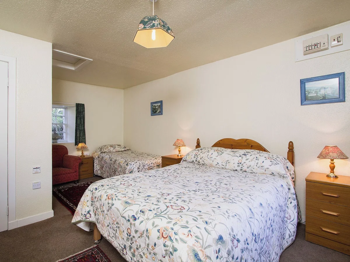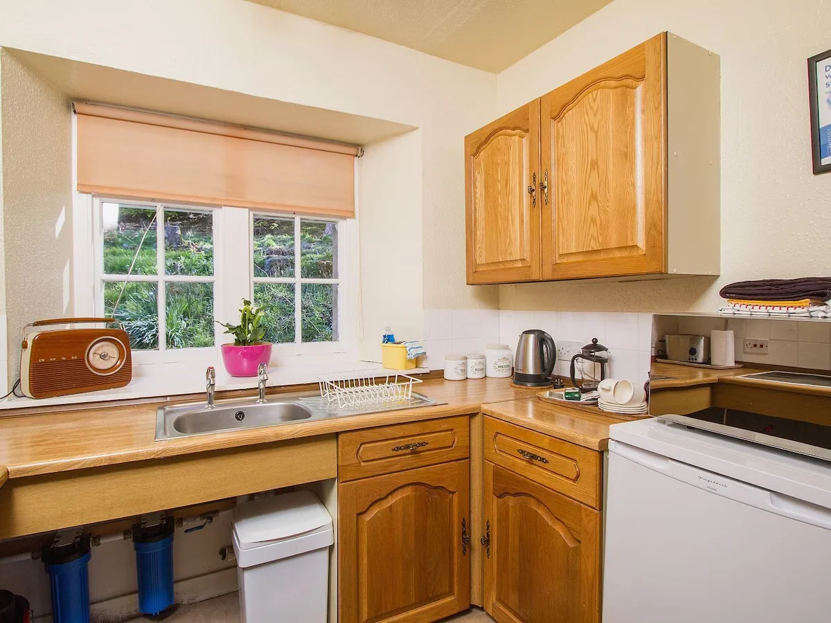 The open plan living space is filled with character, blending traditional cottage charm with the comforts of modern self catering. The cosy lounge, complete with an open fire, offers the perfect place to unwind after a day exploring the glen. A TV and DVD player provide relaxed evening entertainment, while the well equipped kitchen and dining area make self catering easy and enjoyable. The comfortable bedroom includes both a double and a single bed, along with an en suite shower room for added convenience.