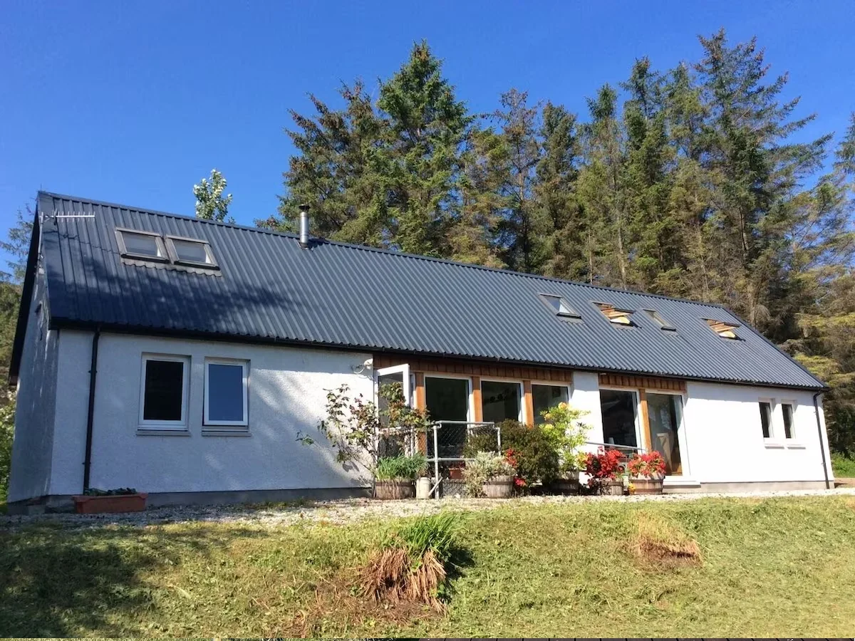 Set amidst the untamed beauty of the Scottish Highlands, this exceptional open plan longhouse offers a peaceful and secluded escape on a wild two acre property just 13 miles from Ullapool, on the tranquil south shore of Loch Broom. Only a five minute walk from the water’s edge, the house blends creative character with modern comfort, making it an inspiring retreat for walkers, writers, artists, and anyone seeking an authentic Highland experience immersed in nature.
