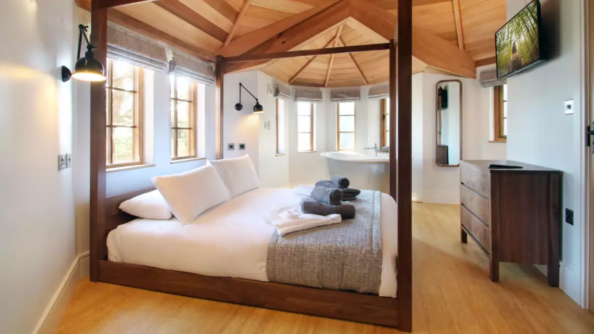 Upstairs, two additional ensuite bedrooms offer cosy yet elegant spaces, complete with panoramic views of the countryside and coastline. Each room has been carefully designed to maintain a perfect balance of comfort and style, creating a welcoming atmosphere for every guest.