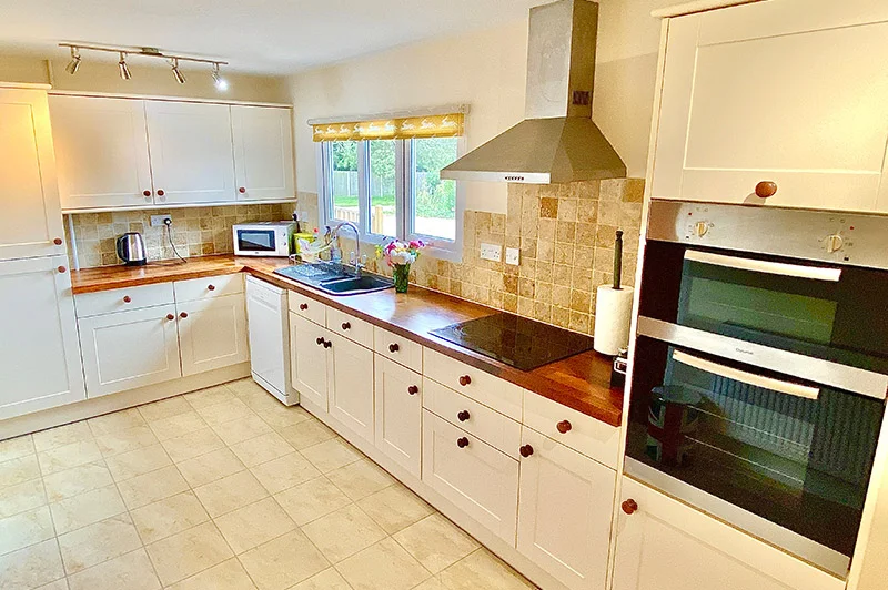From the moment you arrive, convenience is effortless, with gravel parking at the front of the lodge and level access leading indoors. The living room offers generous space for easy manoeuvring, complete with two sofas and an armchair that create a warm and welcoming setting for unwinding after a day of wildlife watching. The well-equipped kitchen maintains level access and includes a mid-height oven and seated-position amenities, allowing all guests to prepare meals with ease. A separate dining room with free-standing seating provides plenty of space for relaxed group meals.