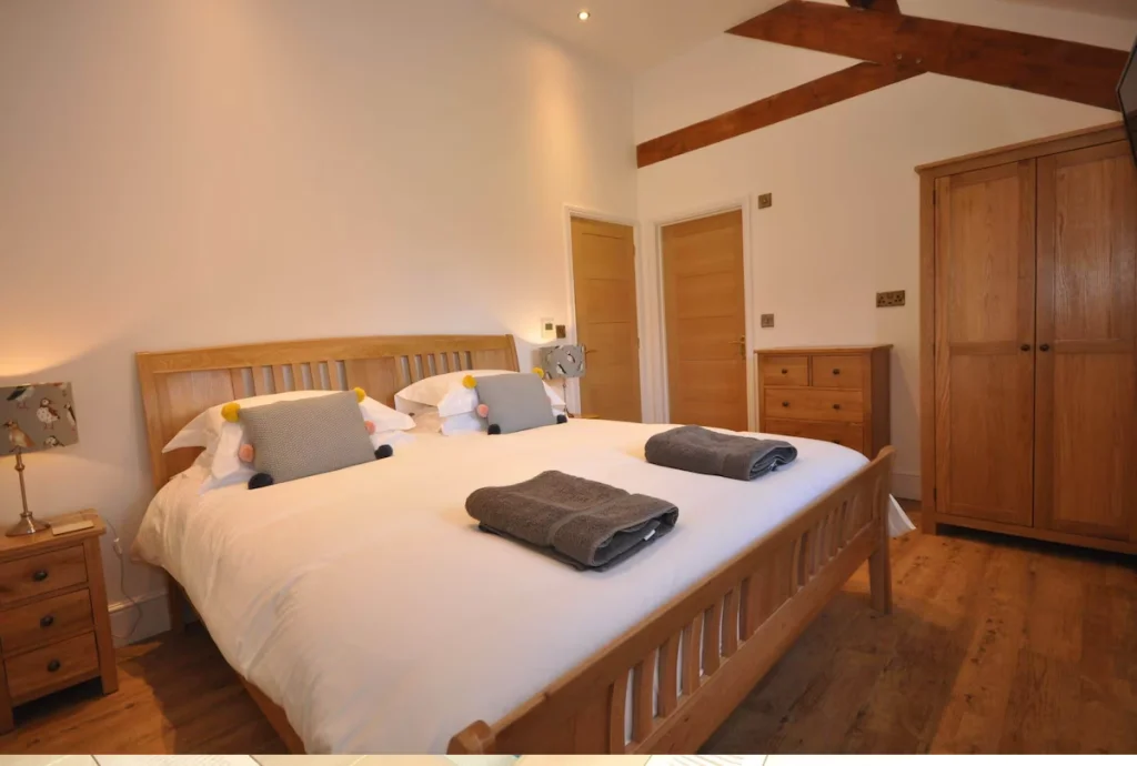 Nestled on the peaceful outskirts of Bideford in North Devon, the Moulton-Barrett Barn is a beautifully converted single-storey retreat designed to offer both comfort and accessibility. Ideal for families, groups, and guests with mobility needs, this spacious countryside escape brings together modern convenience and rustic charm, creating the perfect setting for a relaxing Devon holiday. Inside, the barn features a bright and welcoming open-plan living, kitchen, and dining area, where natural light and thoughtful design make it easy to unwind together. With three stylish ensuite bedrooms—two doubles and one twin—the barn comfortably accommodates up to six guests. Each bedroom offers step-free access and private facilities, making this property an excellent choice for guests who prefer accessible accommodation without compromising on comfort. Outside, a large enclosed garden invites you to enjoy the fresh Devon air. Whether dining on the patio, lounging on the lawn, or simply admiring the countryside views, the outdoor space is perfect for relaxation. Guests also have access to shared on-site amenities, including a swimming pool with gentle steps for easier access, and a soothing hot tub offering a tranquil spot to unwind after a day of exploring. For eco-conscious travellers, the property includes convenient electric vehicle charging, supporting a more sustainable stay. Located just a short drive from the bustling town of Bideford, the Moulton-Barrett Barn is perfectly positioned for discovering the best of North Devon. Explore golden beaches, the famous Tarka Trail, charming villages, and local attractions such as Westward Ho!, Clovelly, Instow, and RHS Rosemoor. Whether you’re seeking coast, countryside, or family-friendly adventure, this welcoming and accessible retreat provides the ideal base for an unforgettable Devon getaway.
