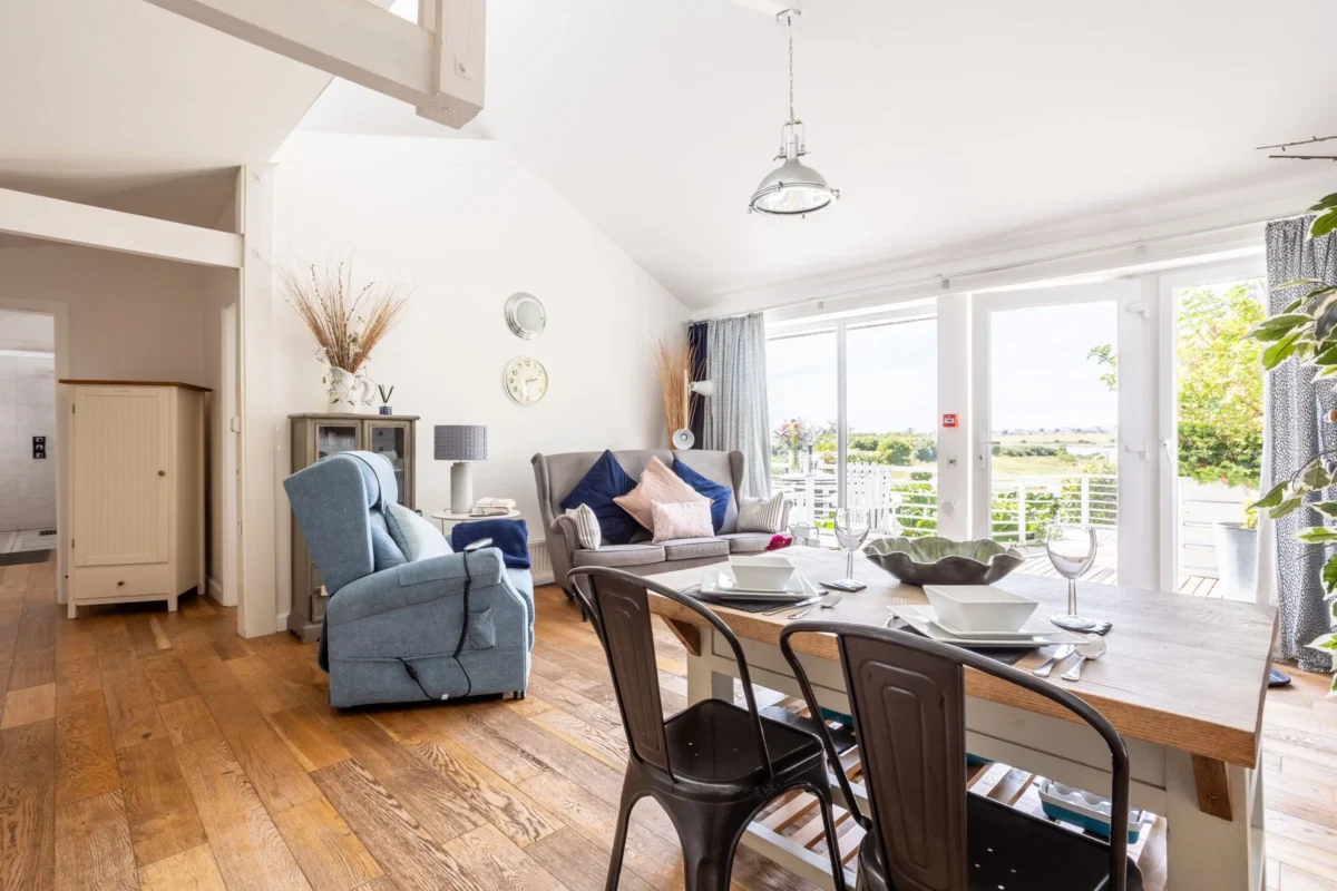 With ramped access into the property and level access throughout, every room is easy to navigate. The spacious wet room is thoughtfully equipped with a wheel-in shower, wheel-under wash basins, handrails, and an emergency pull-cord alarm, ensuring both safety and independence. The flexible bedroom layout allows guests to choose between a king-size bed or twin beds, each electrically adjustable so you can tailor your sleeping position for maximum comfort.