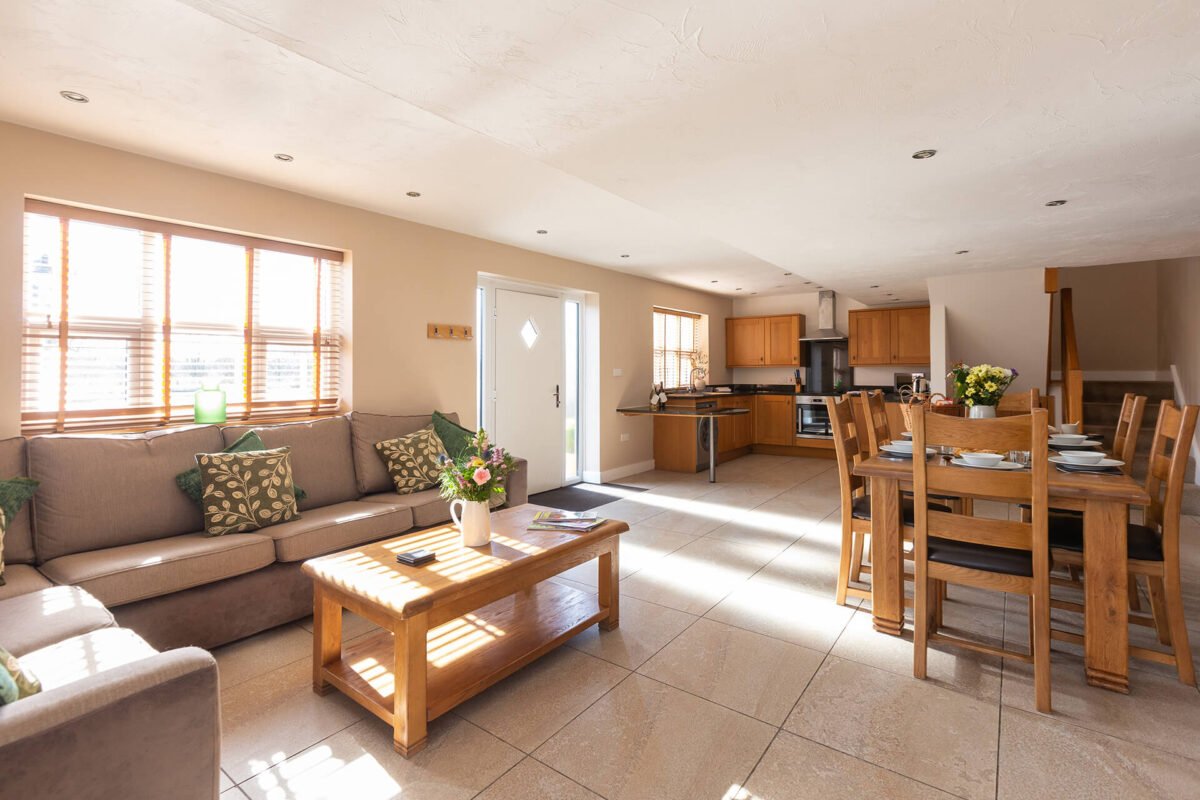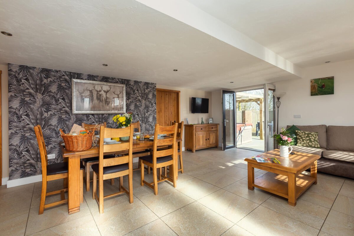 Step inside and you’re greeted by a warm and inviting living area, tastefully decorated for comfort and relaxation. The open-plan layout connects the lounge to the two ground-floor bedrooms, each featuring luxurious pocket-sprung beds and elegant en suite bathrooms with either a refreshing shower or a relaxing bath.