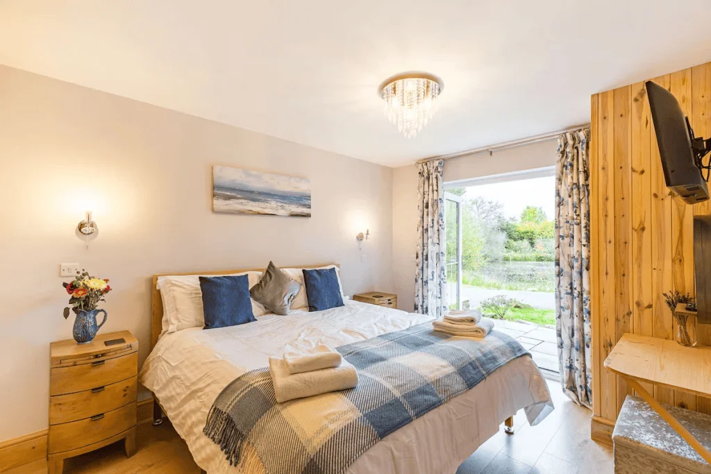 Upstairs offers two additional super-king bedrooms, each with an en-suite shower room and flexible twin setup. One of the bedrooms includes a stunning free-standing bath, perfect for unwinding at the end of the day, while the lakeside room opens onto a private balcony overlooking the water.