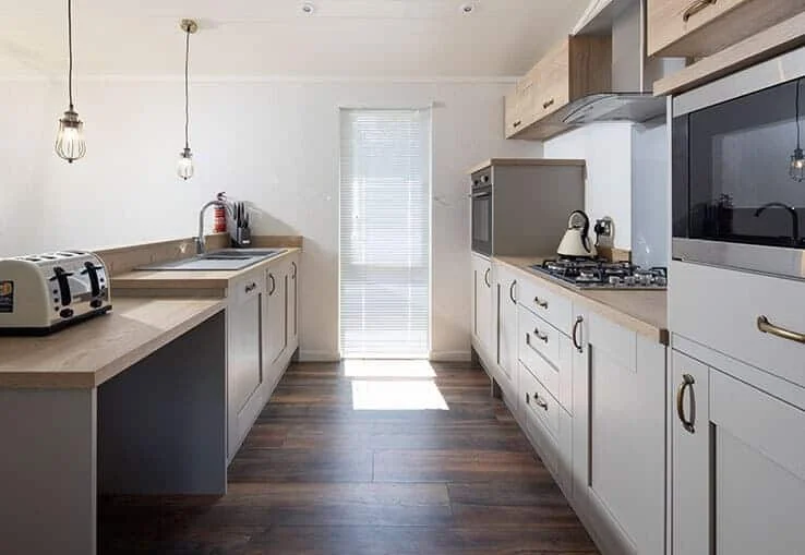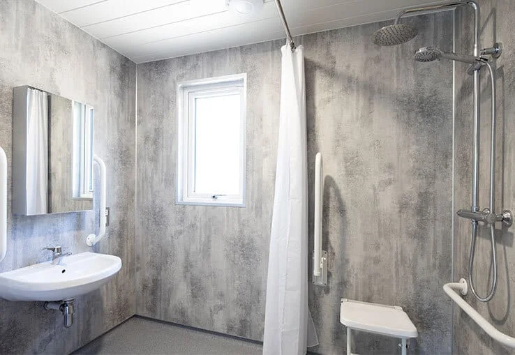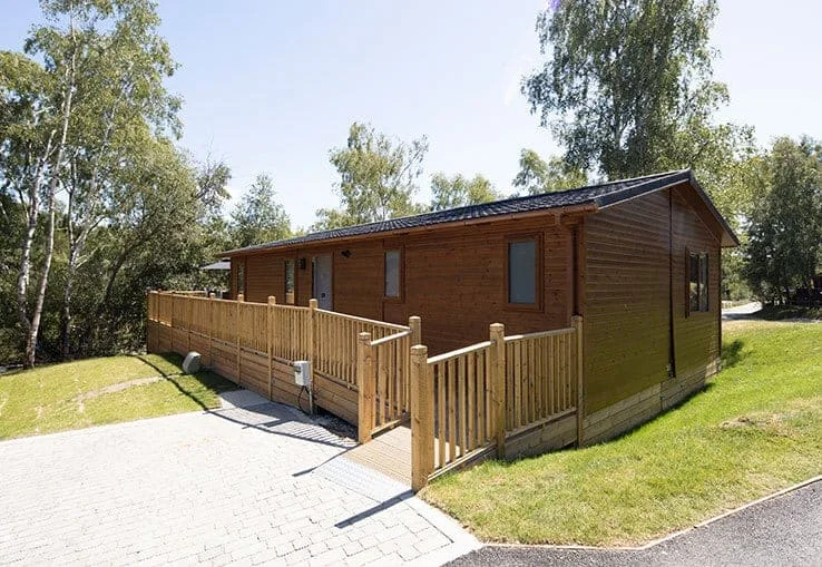 Accessibility is central to the lodge’s design. A ramped entrance provides effortless step-free access, while the fully adapted wet room includes a roll-in shower, sturdy handrails, and an accessible layout that supports safe, comfortable use. The open-plan kitchen features wheel-under counters and a low-height oven, allowing wheelchair users to prepare meals independently with ease. Wide, open spaces throughout the lodge ensure smooth movement from room to room.