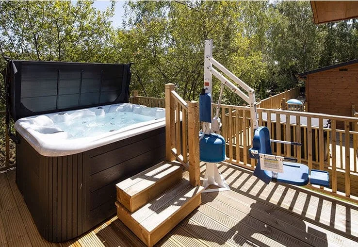 One of the standout features of this accessible lodge is its private hot tub. Specially equipped with a hoist, it offers full inclusivity and provides a luxurious opportunity for relaxation—whether you’re unwinding beneath the stars or enjoying a gentle soak after an active day.