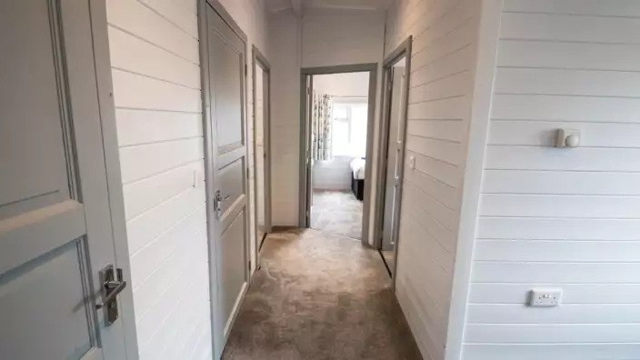 A highlight of the property is the Jack and Jill wet room, designed for safety and convenience, featuring a step-free shower, grab rails, and a shower seat. This space provides complete comfort for guests requiring additional support while maintaining a stylish and modern finish. The three bedrooms are designed for flexibility, with one including bunk beds—perfect for children—and two offering comfortable double or twin arrangements, making the lodge ideal for both families and carers.