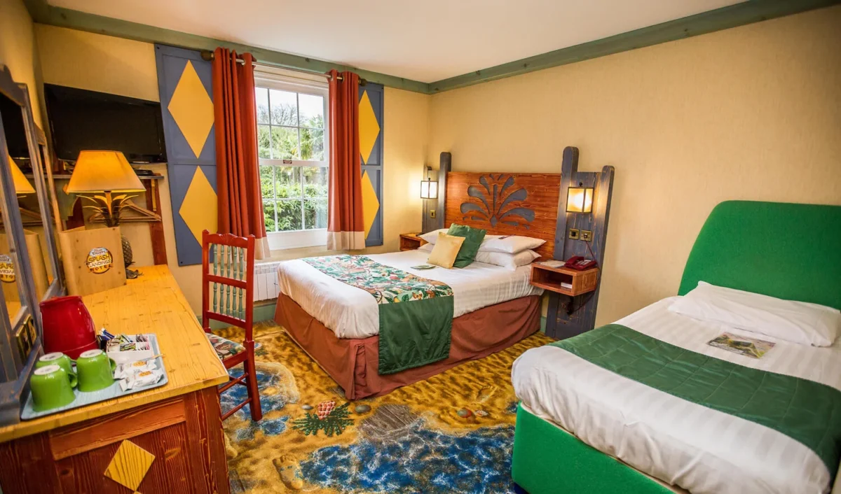 Step into a world of vibrant colors and island vibes at Splash Landings Hotel, where the magic of Alton Towers Resort meets the charm of the Caribbean. This lively hotel is a haven of fun and relaxation, offering a perfect blend of excitement and comfort for families, couples, and anyone looking for a touch of paradise in the heart of the UK. From the moment you arrive, the playful, tropical decor transports you to a sunny getaway. The hotel’s colorful exterior, swaying palm trees, and laid-back atmosphere set the stage for a truly unique stay. Inside, the rooms are cheerful and cozy, designed to suit every guest’s needs. Eleven accessible rooms are available, complete with widened doorways, lowered fixtures, and spacious layouts that ensure comfort and convenience for everyone. The en-suite bathrooms offer step-free showers, handrails, and ample space for easy transfers, creating a welcoming environment for all guests, including those with mobility requirements. A standout feature of Splash Landings is its incredible on-site waterpark, a tropical oasis of fun with thrilling slides, lazy rivers, and interactive splash zones. The waterpark is easily accessible, with level entry points and thoughtful design, ensuring that all guests can join in the excitement. Whether you’re racing down slides or floating through the lazy river, it’s an experience that guarantees laughter and joy for visitors of all ages and abilities. When it’s time to refuel, the hotel’s vibrant restaurants bring the flavors of the islands right to your table. From zesty jerk chicken to tropical fruits and hearty family-friendly meals, the diverse menu has something for everyone. Guests can enjoy dining spaces with free-standing seating, designed to accommodate wheelchairs comfortably, while the lively decor adds an extra splash of fun to every meal. As the day winds down, the hotel’s tropical-inspired spaces provide the perfect setting for relaxation. Whether you’re lounging by the patio, enjoying a drink in the colorful bar area, or taking a quiet moment on the terrace, Splash Landings is as much about unwinding as it is about adventure. With step-free access throughout the hotel, lifts to all floors, and dedicated parking close to the entrance, every detail has been considered to ensure a seamless and stress-free stay for all guests. Whether you’re diving into the waterpark, savoring delicious Caribbean-inspired dishes, or simply soaking up the laid-back atmosphere, Splash Landings Hotel offers a vibrant and inclusive getaway. It’s the ideal destination for families, friends, and anyone seeking a memorable tropical escape, where fun and relaxation go hand in hand, and where everyone is invited to join the adventure.