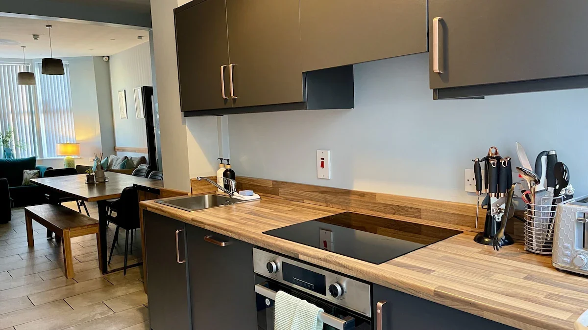 Welcome to The Muse – Accessible Belfast Townhouse, a stylish and comfortable four-star townhouse set right in the heart of Belfast’s historic and cultural district. Thoughtfully designed and beautifully furnished, it’s a brilliant choice for families, groups, and business travellers looking for a relaxed place to stay within easy reach of the city centre. With five individually decorated bedrooms, the property can accommodate up to 11 guests, giving everyone plenty of space to unwind. The Muse has been created with accessibility in mind. The ground floor is fully step-free, and the accessible bedroom includes its own ensuite wet room with a level-access shower, grab rails, and an emergency pull cord. These features help ensure a safe and comfortable stay for guests with limited mobility. Inside, you’ll find all the modern touches you’d expect from a boutique property. There’s free high-speed Wi-Fi throughout, smart TVs in every room, and smart locks on both the main door and all bedrooms for simple, flexible self-check-in. Free on-street parking is available nearby, making arrival and departure stress-free. The townhouse is just a short walk from Belfast City Centre, placing many of the city’s top attractions within easy reach. The Waterfront Hall, SSE Arena, Belfast Empire Music Hall and the iconic Titanic Belfast are all a quick journey away. George Best Belfast City Airport is also close by, just 2.4 miles from the door. With a great location, thoughtful accessibility features, and a warm, modern feel, The Muse offers a welcoming base for exploring Belfast’s history, culture, food and nightlife—ideal for groups looking for comfort and convenience during their stay.