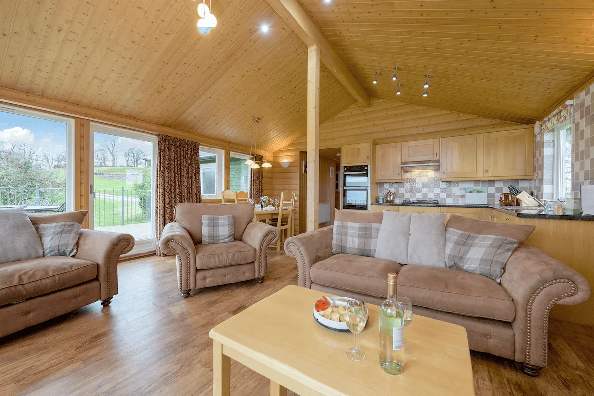 From the moment you arrive, step free access makes movement effortless throughout the lodge. Wide, unobstructed pathways lead through the open plan living areas, where large windows frame views of the surrounding countryside. Both bedrooms are spacious and beautifully appointed, each with a sumptuous super king size bed. The second bedroom can also be configured as a twin to meet individual needs, making The Ramsey ideal for couples, friends, and families seeking flexibility.