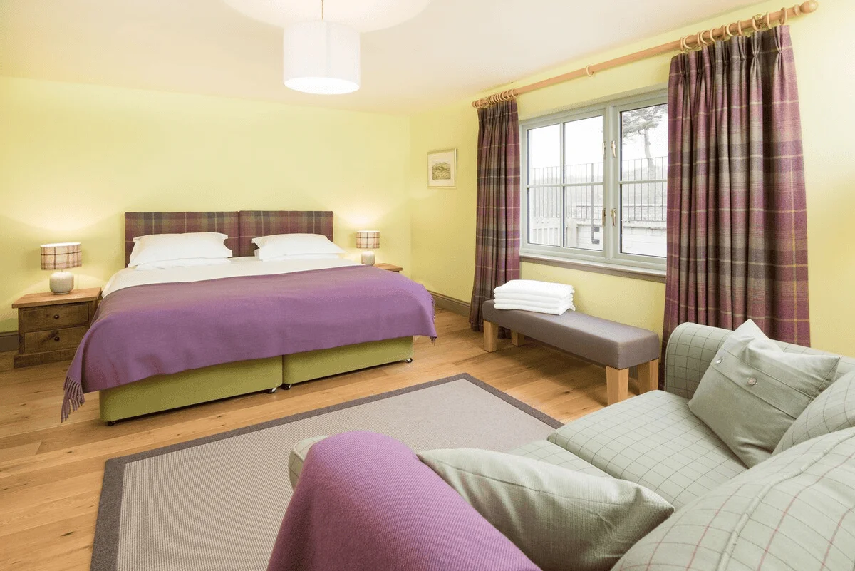 Upstairs, guests will find a family bathroom and an ensuite in the first floor double bedroom, providing plenty of flexibility for groups or families. Underfloor heating powered by a ground source system keeps the property cosy in every season, enhancing the sense of comfort throughout your stay.