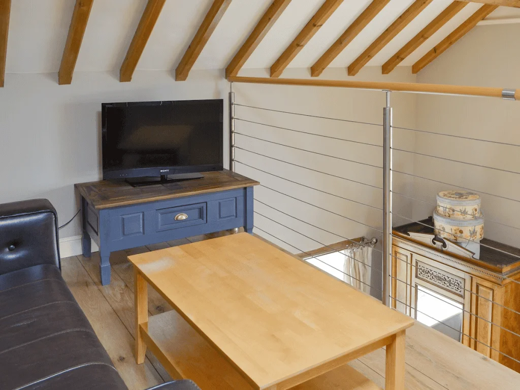 The flexible ground floor layout includes a Zip and Link double bedroom that can be configured as either a double or two single beds, offering excellent versatility for mixed groups. This bedroom also benefits from an en suite bathroom featuring an accessible shower and supportive handrails, creating a practical and comfortable space for guests with mobility needs. The master bedroom on the ground floor is a standout feature, offering an inviting mezzanine level with a private seating area and smart TV, perfect for unwinding in peace.