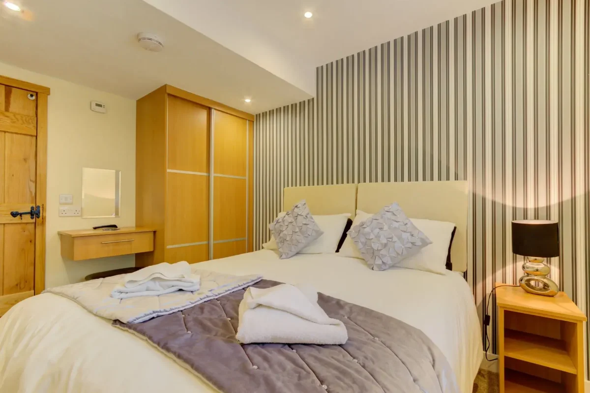 Upstairs, the first-floor bedroom provides a serene retreat with a fixed double bed and an en suite bathroom boasting a free-standing bath, ideal for unwinding after a day of exploring. Every aspect of Willow Cottage has been designed to ensure that all guests, regardless of mobility level, can enjoy a relaxed and comfortable stay.